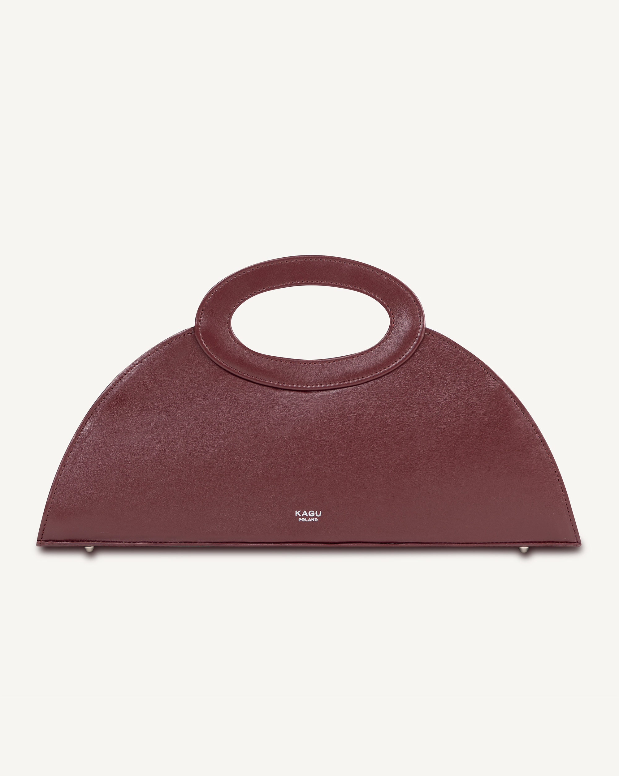 Torebka do ręki wykonana z bydlęcej skóry licowej. Główna komora zamykana na zamek, wewnątrz kieszonka wpuszczona w boczną krawędź torby. Z przodu wybity srebrny stempel.